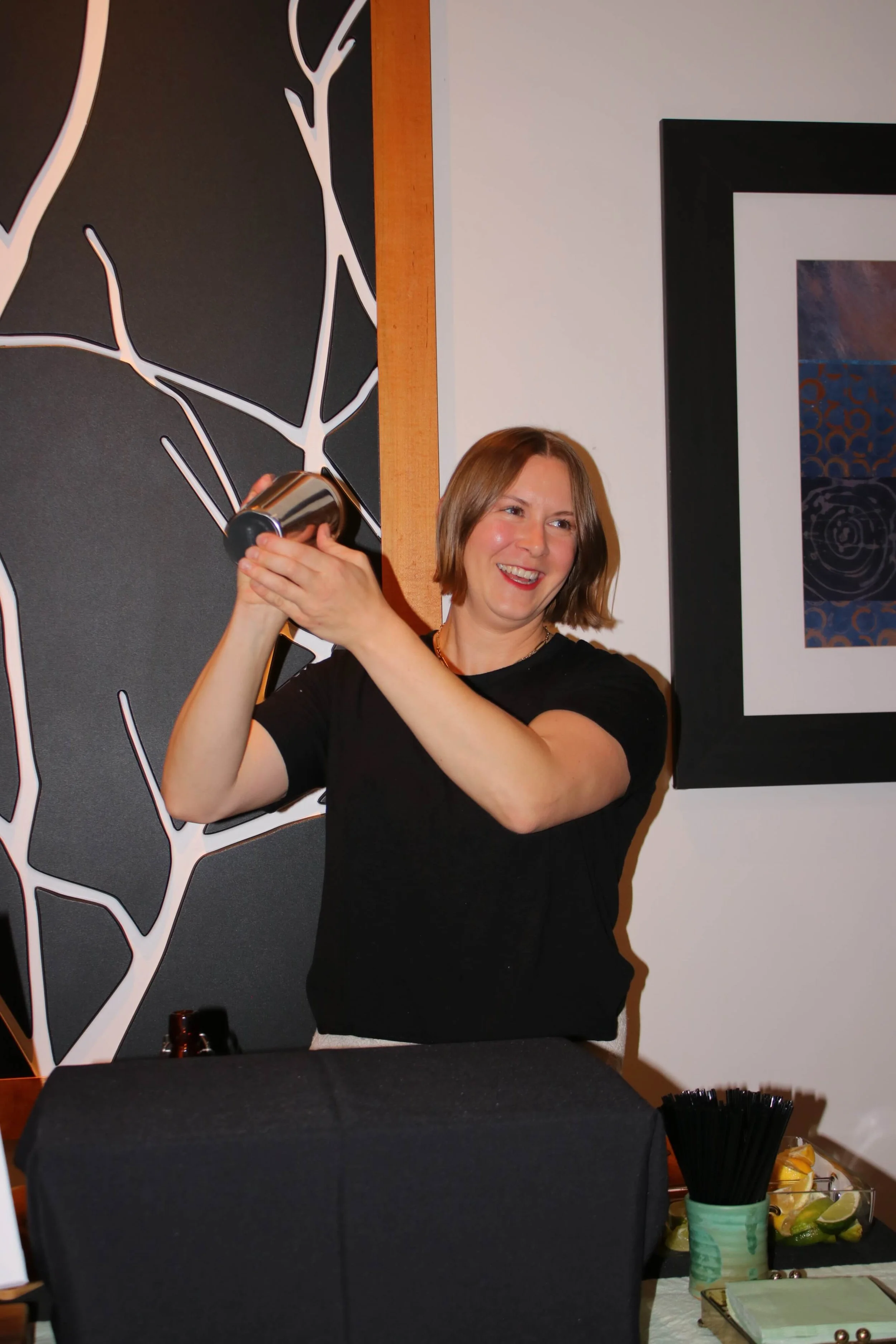 If your space or venue already has a bar set up we will that, but for now we have a humble fold out table that can be customized and styled to match your event ascetic, including tablecloth color, menu design, and tasteful additions like flowers, decals or banners.